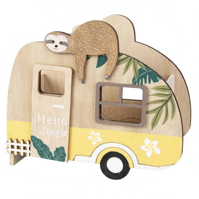 Dekokörbchen – Wohnwagen – aus Holz – ca. 16 x 9,5 x 18 cm