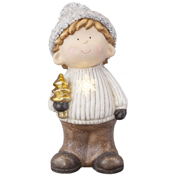 Sie mögen es, Ihrer Fantasie in der Adventszeit mit festlicher Dekoration freien Lauf zu lassen, und sind zudem auf der Suche nach einem besonderen Stück, das Ihre vier Wände im Nu in eine behagliche Weihnachtsatmosphäre taucht? Dann liegen Sie hiermit goldrichtig! Das niedliche Winterkind ist der nicht nur der optimale Bote der kälteren Jahreszeit, sondern es eignet sich darüber hinaus auch hervorragend, um mit Leichtigkeit eine behagliche Atmosphäre aufkommen zu lassen. Dieses ist nämlich eine gelungene Neuinterpretation des Klassikers, der sich mithilfe der liebevollen Gestaltung nahtlos in jeden Raum einfügt. Es besteht aus Magnesia, misst 20 x 17,5 x 40 cm und kommt entweder als liebenswertes Mädchen oder schelmischer Junge daher (eine Vorauswahl ist leider nicht möglich). Die winterliche Schneeflocke leuchtet in Kombination mit 3x AA Batterien (nicht im Lieferumfang enthalten) wohlig auf und versüßt Ihnen die stimmungsvolle Zeit so maßgeblich. Also schnappen Sie sich die hinreißende Dekofigur und erleben Sie einen wohligen Advent!