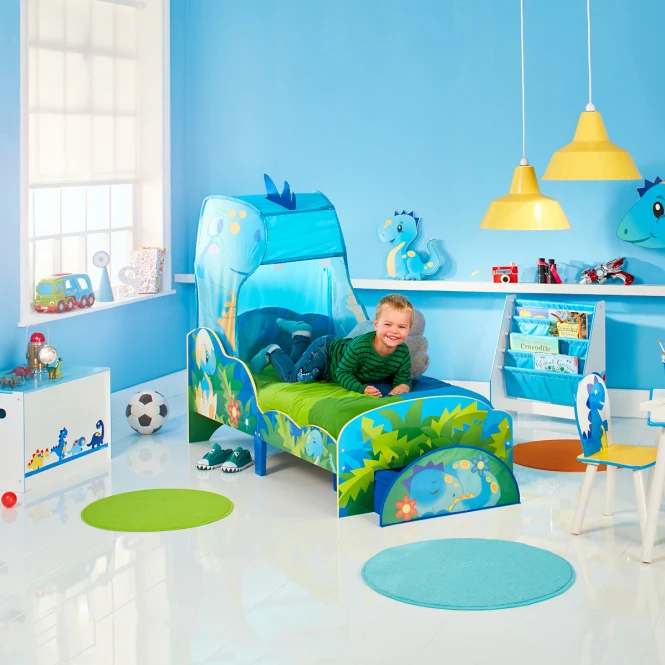 - Mit freundlichem Dinosaurier-Schlafzelt mit Betthimmel und praktischem Stauraum in der Schublade unter dem Bett